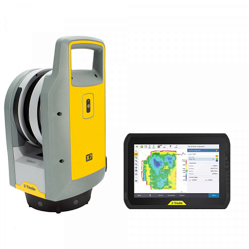 В комплект Trimble X7 входит все необходимое оборудование - беспроводной полевой контроллер-планшет T100, ПО “Perspective”, легкий и прочный штатив из углепластика, аксессуары