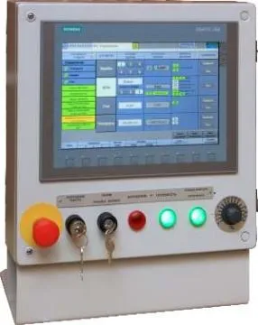 Управление всеми механизмами установки осуществляется с пульта управления, установленного в операторской. Пульт управления имеет сенсорный ЖКИ дисплей (Touchscreen) с размером экрана по диагонали 304 мм. С пульта управления можно управлять всеми механизмами установки в полуавтоматическом и наладочном режимах, а также отслеживать их положение. На дисплей пульта выводятся также различные текстовые сообщения о работе механизмов установки и данные измерений температуры, влажности и МЭД с детекторов системы радиационного контроля.