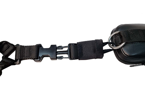 На стандартный чехол D12 для дефектоскопа А1212 MASTER установлены крепежные монолитные металлические кольца, за любое из которых можно закрепить трехточечный тактический ремень-разгрузку. Ремень входит в комплект. При таком креплении прибора дефектоскопист получает большую мобильность в стесненных условиях и при перемещении по лестницам (стремянкам), когда штатный планшет на поясе оператора мешает движению. Ремень имеет три пряжки, позволяющие быстро снять или весь ремень, или отстегнуть при необходимости дефектоскоп.